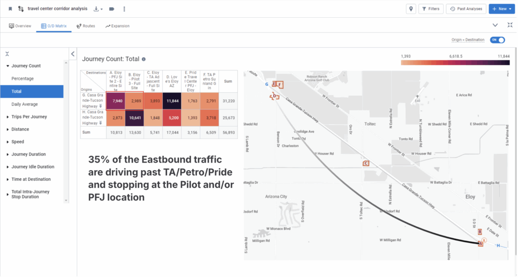 - Commercial vehicle stop patterns can point to emerging travel corridors and hospitality opportunities.