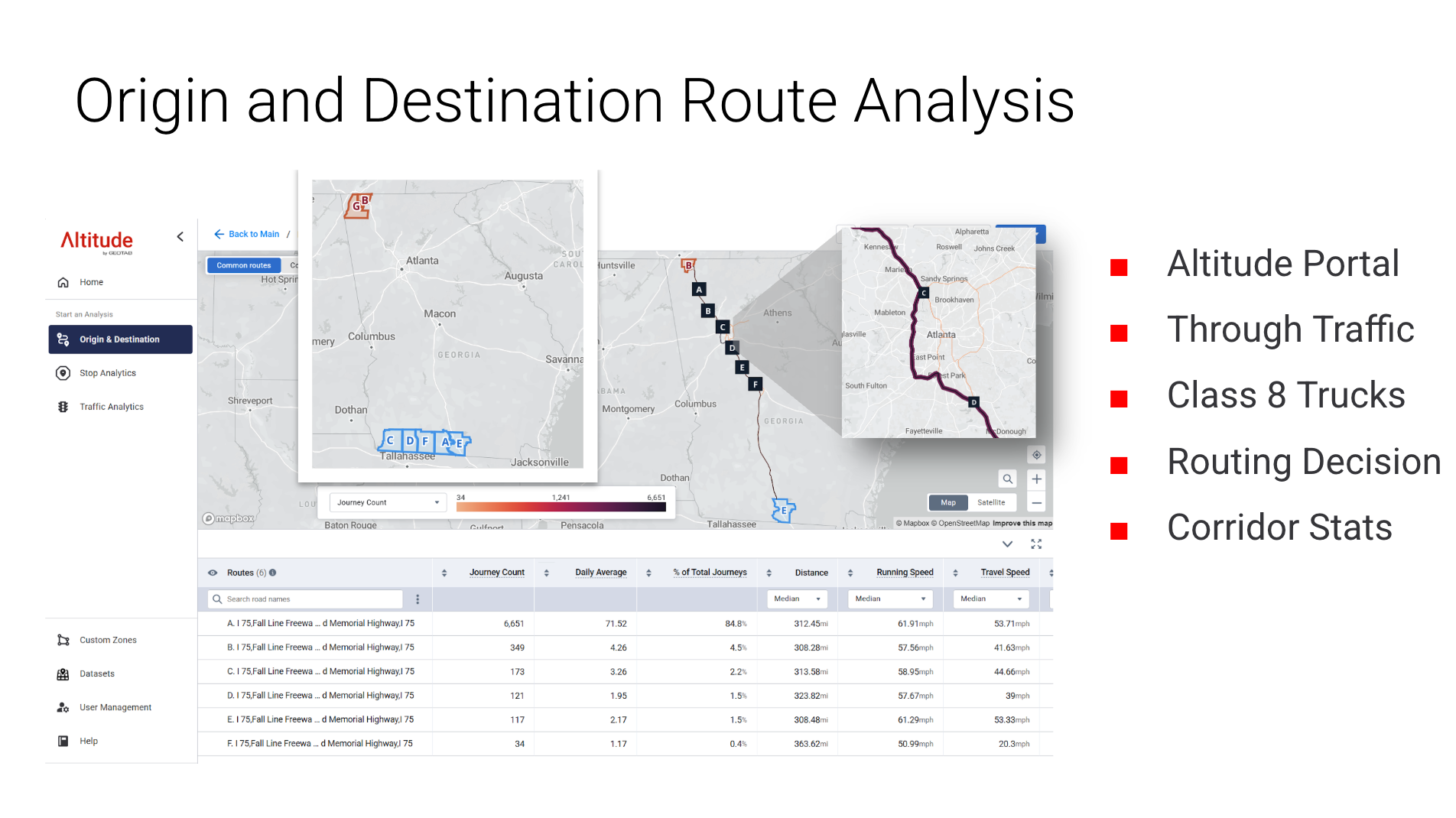 Not all congestion is caused by local freight. Altitude’s Origin & Destination analysis shows where freight ultimately begins and ends, revealing:
