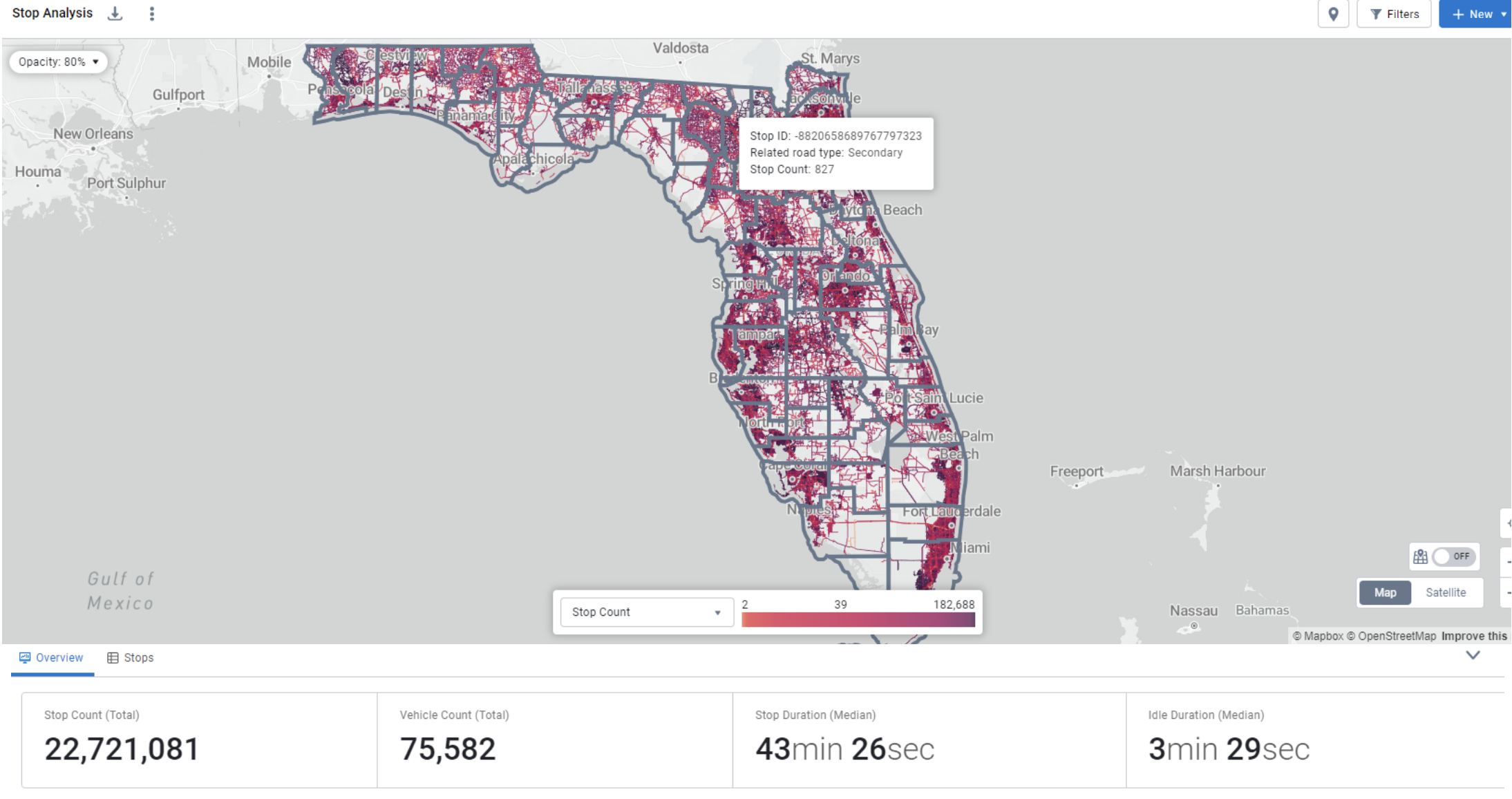 No, because we can’t break out any information by PII criteria. Altitude by Geotab provides aggregated, anonymized commercial movement insights with minimum-count thresholds and PII data suppression. No identifiable fleet, vehicle, driver, or customer information is exposed or sold. Put simply, we publish planning-grade insights at geographic/corridor levels, not fleet-specific data.